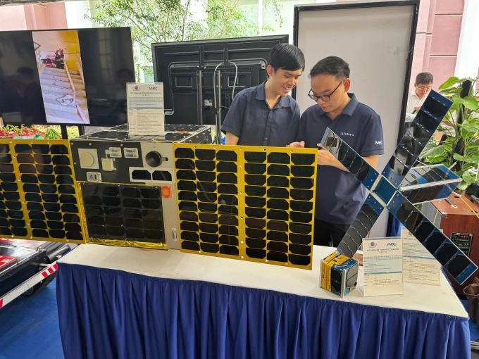 | Loạt mô hình vệ tinh MicroDragon, NanoDragon, PicoDragon của Trung tâm Vũ trụ Việt Nam trưng bày tại Ngày hội Khoa học và Công nghệ 2025, tại trụ sở Bộ Khoa học và Công nghệ, ngày 16/5. Ảnh: Lưu Quý |